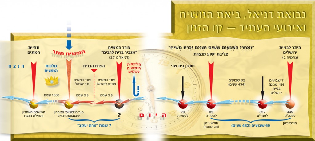 המלאך גבריאל אמר שמעת פרסום הצו ועד "מָשִׁיחַ נָגִיד" יעברו שישים ותשעה "שָׁבֻעִים" של 7 שנים כל אחד (69 X 7 = 483 שנים). במילים אחרות, 483 שנים אחרי 445 לפנה"ס יהיה המשיח בעולם.